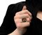 Anello in oro giallo e bianco 18 kt , con topazio citrino centrale su onice con ghiera di brillanti Gr 9.30, Misura 13 Brillanti 0.38 kt