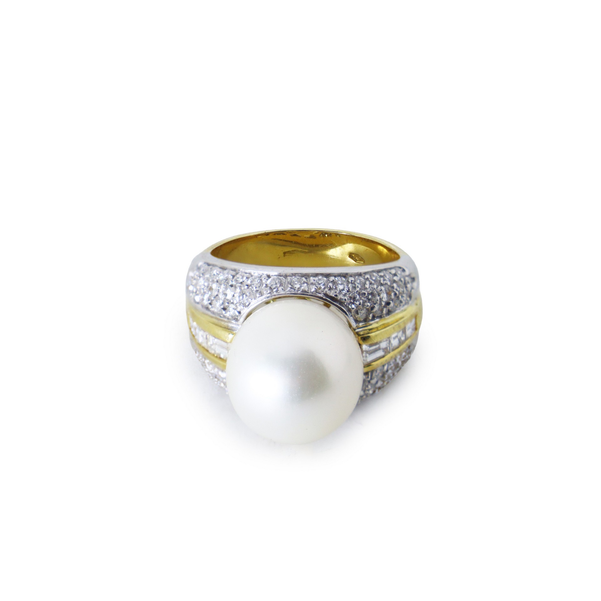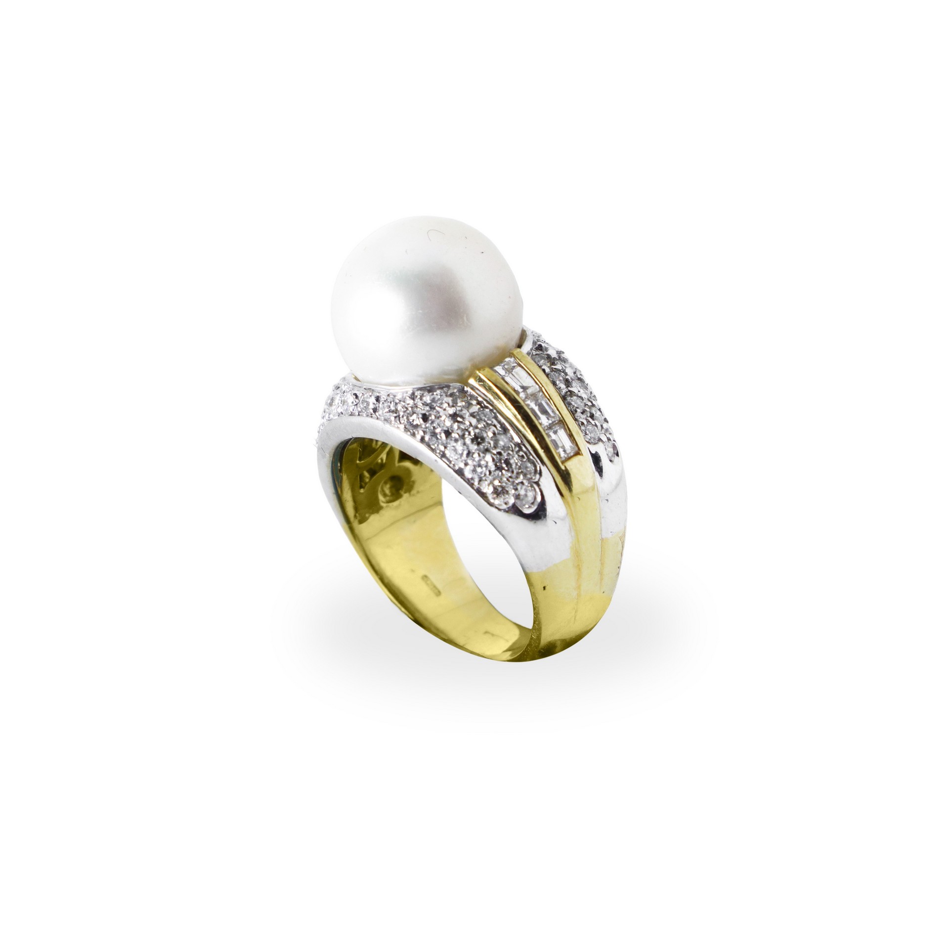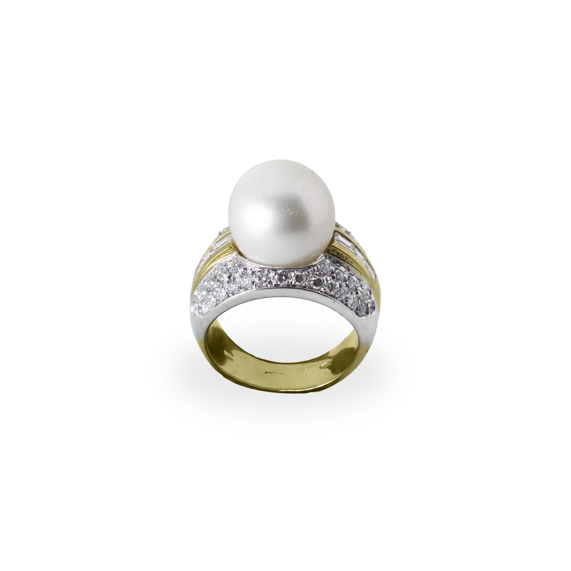 Anello in oro bianco 18 kt con diamati taglio brillante e perla australiana Oro Gr 12 , peso totale gr 14,80 Brillanti kt 1,32, perla kt 14,95