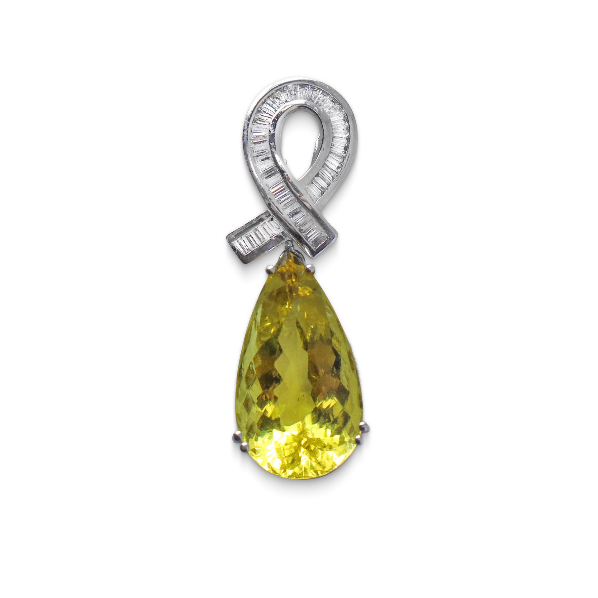 Pendente in oro bianco 18 kt con crisoberillo extra e diamanti taglio baguette