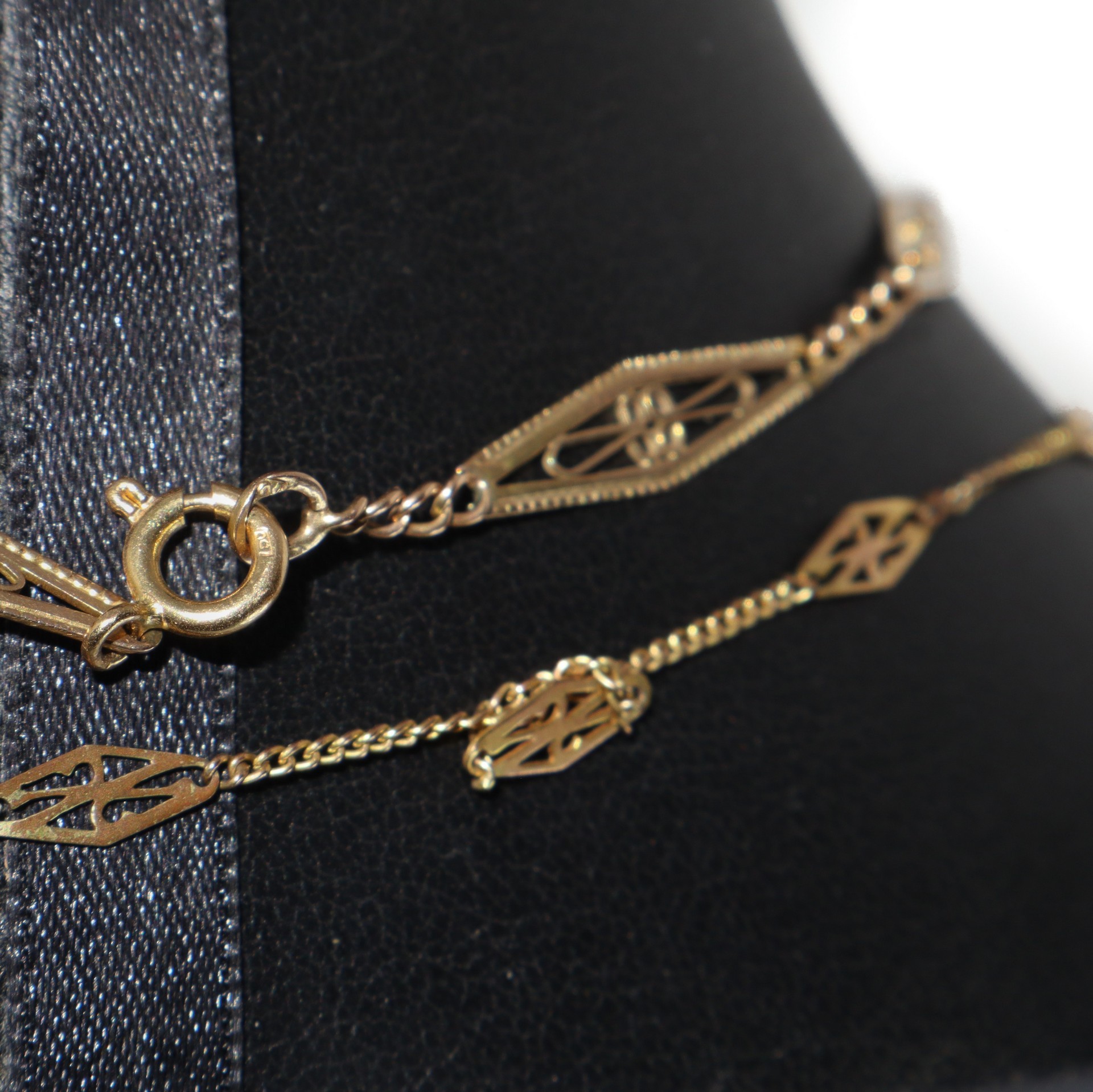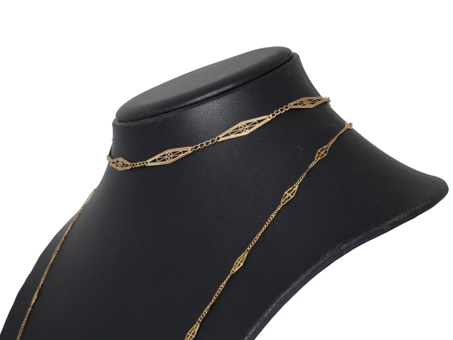 Coppia di collane in oro giallo 750 con decori triangolari Gr 10.6 c/ca cm 35,5 e cm 65