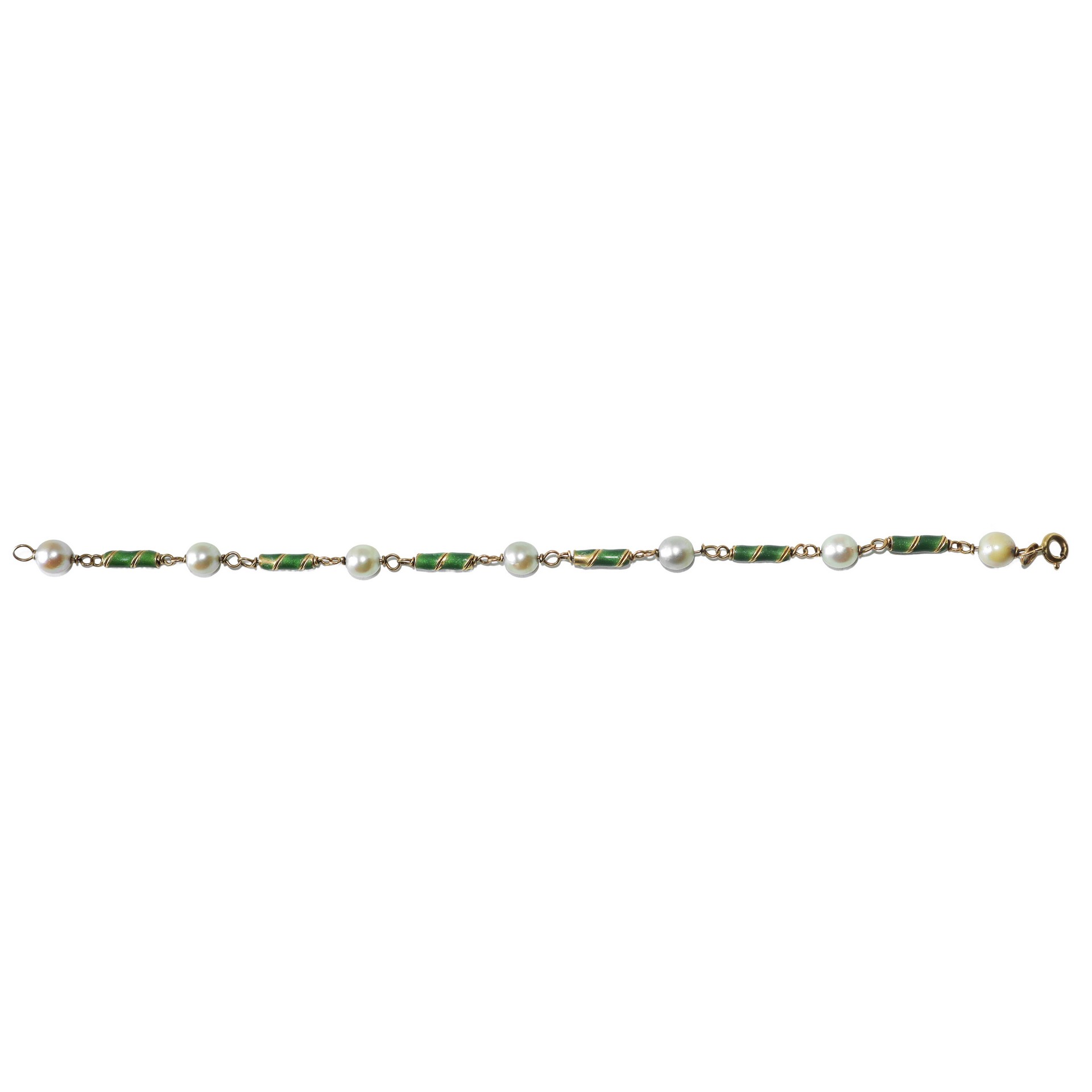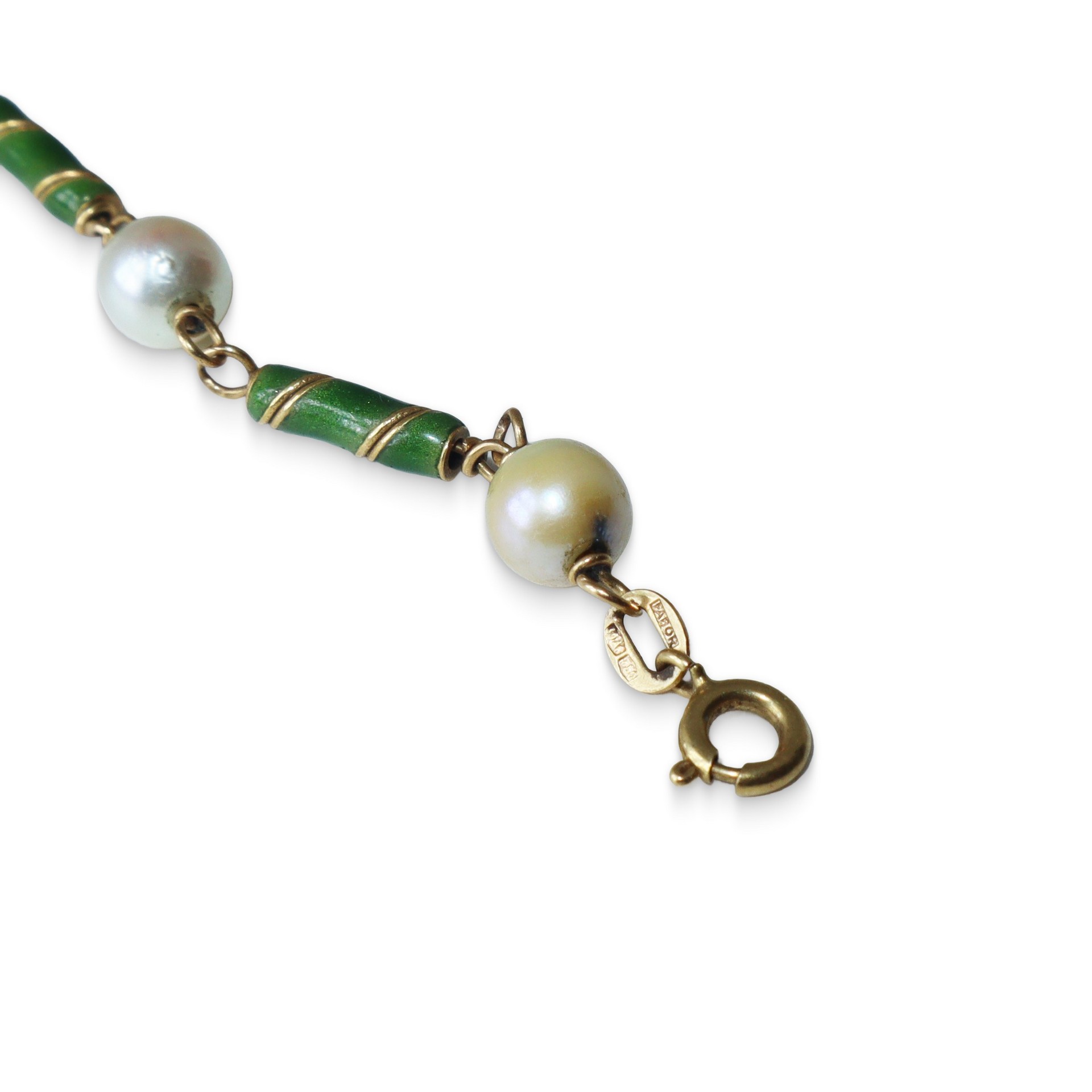 Bracciale in oro 750 con perle e smalti verdi Gr 9,5
