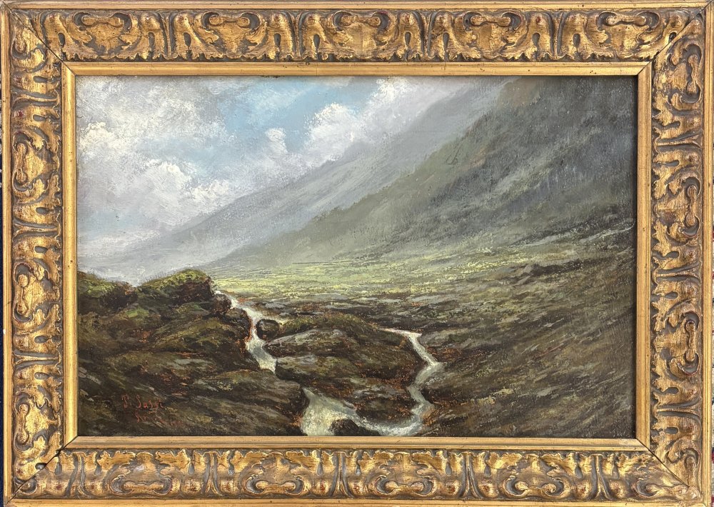 Pietro Sassi Alessandria 1834 - Roma 1905 Col di tenda Olio su tavola cm 30x40 firmato in basso a sx datato 1904