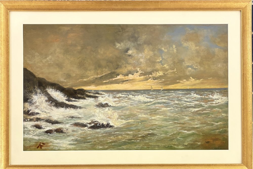 Siglato AF Italia del nord XIX/XX secolo Marina Olio su tavola cm 36x56 siglato in basso a sx