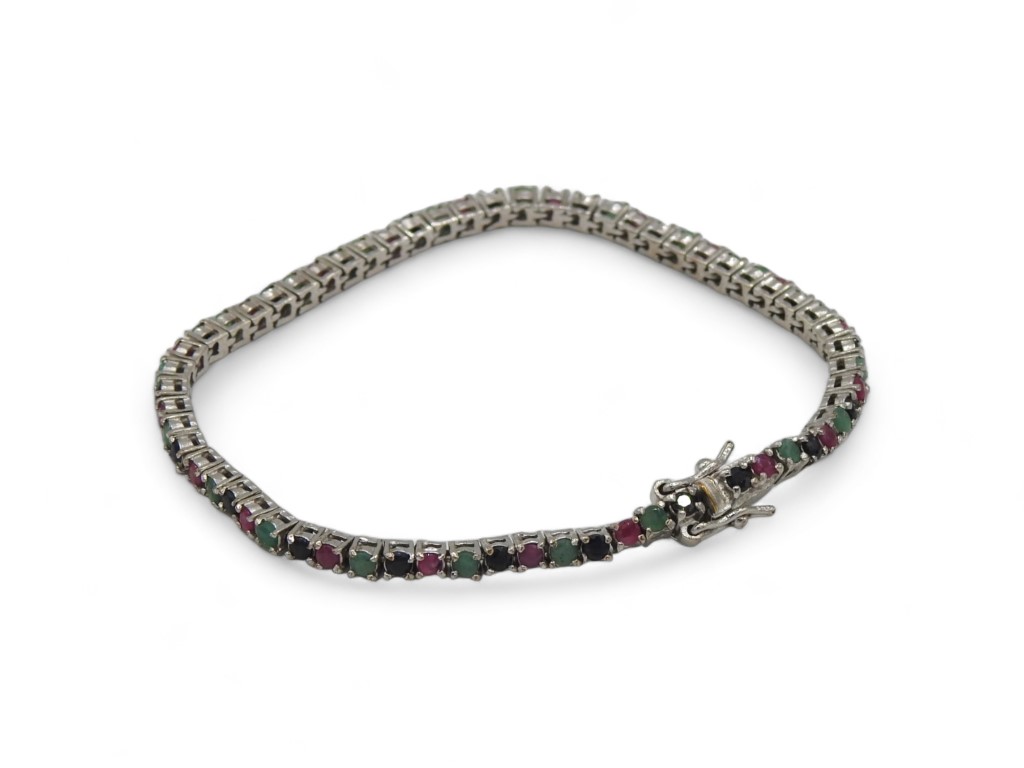 Lotto 18 | Bracciale in argento 925 modello tennis, con pietre naturali di forma rotonda...