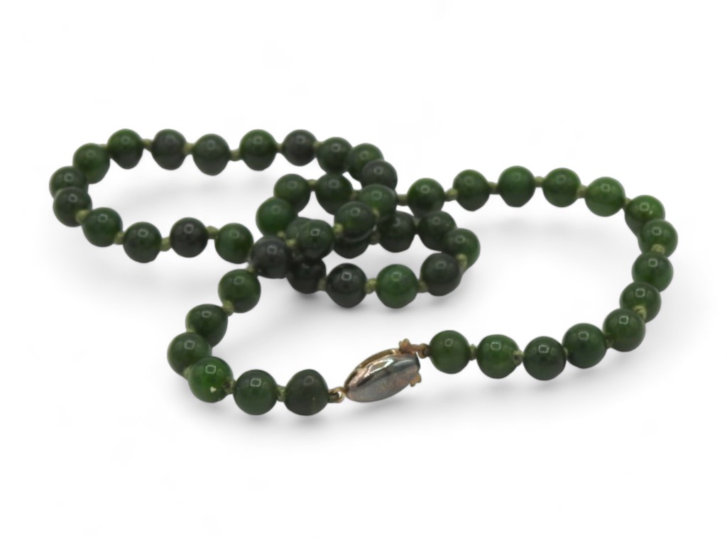Collana in giada serpentina chiusura in argento Diametro perle 0.8 Lunghezza...