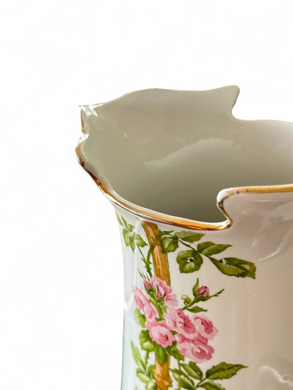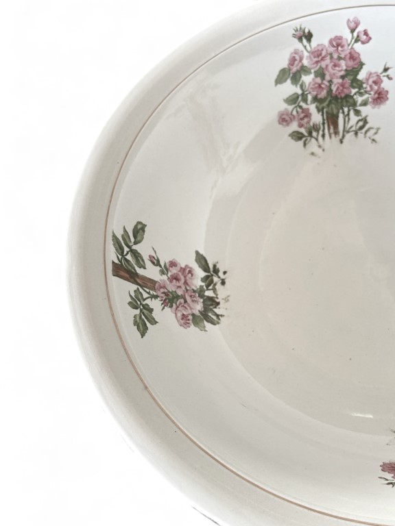 dipinta a motivi floreali,composto da brocca e catino