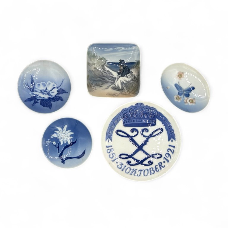 Cinque piattini in porcellana, Royal Copenhagen Il più grande diametro cm 15,5