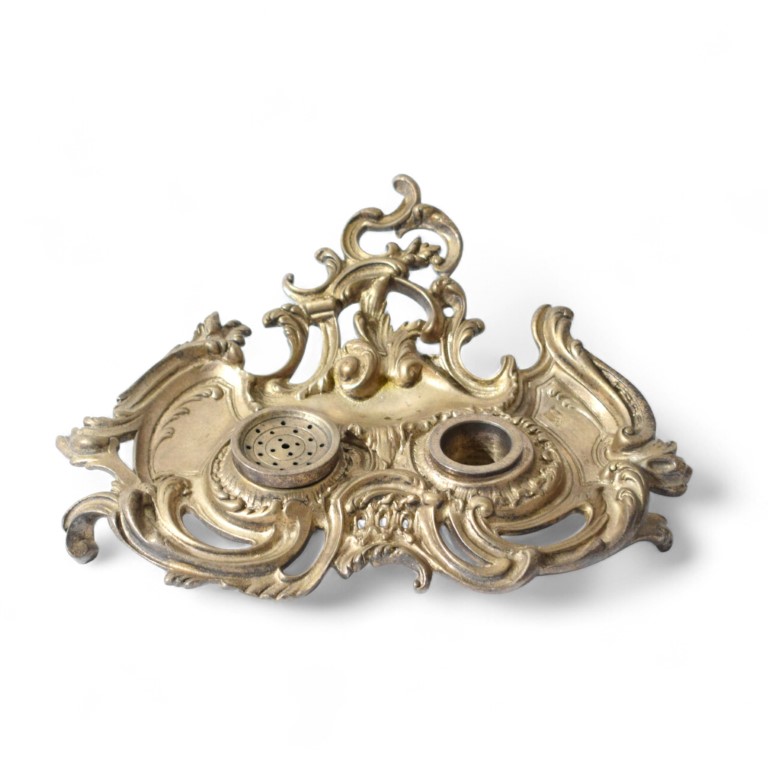 Calamaio da tavolo di gusto rocaille in metallo argentato