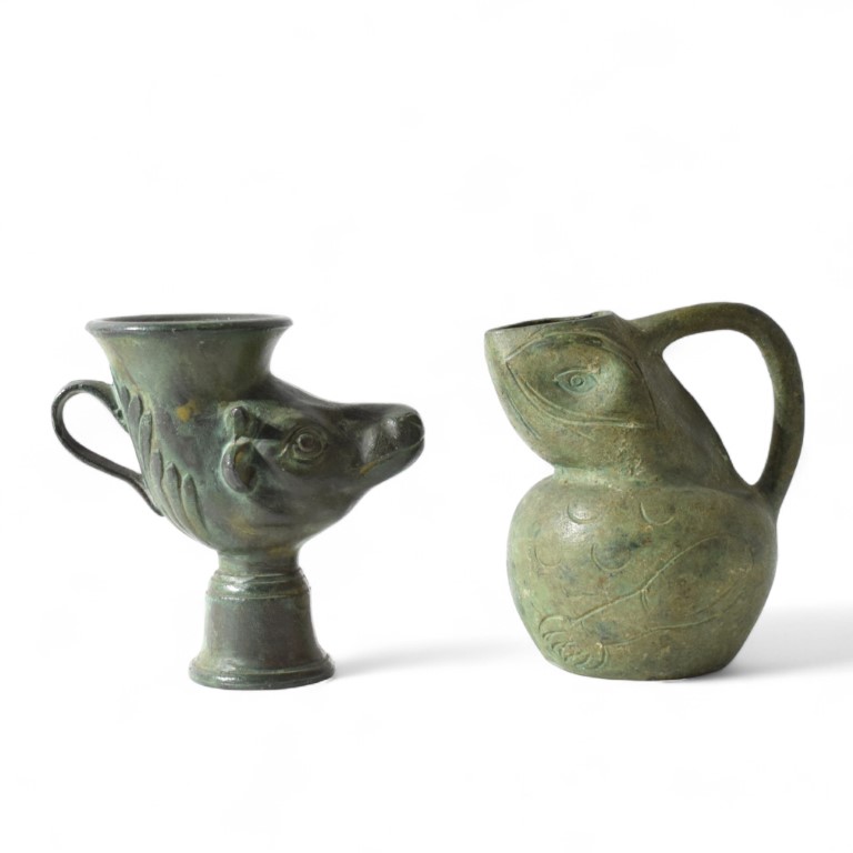 Oinochoe e rython in bronzo Fine del XIX secolo Modellati rispettivamente a...