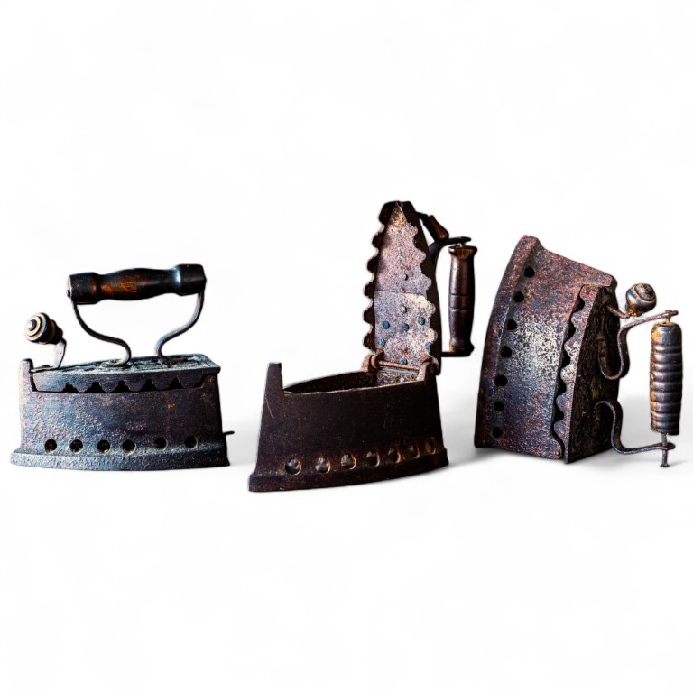 Lotto 233 | Tre ferri da stiro a carbone in ferro