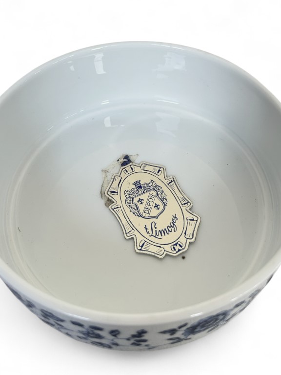 Scatola in porcellana bianco e blu, Limoges Diametro cm 16.5