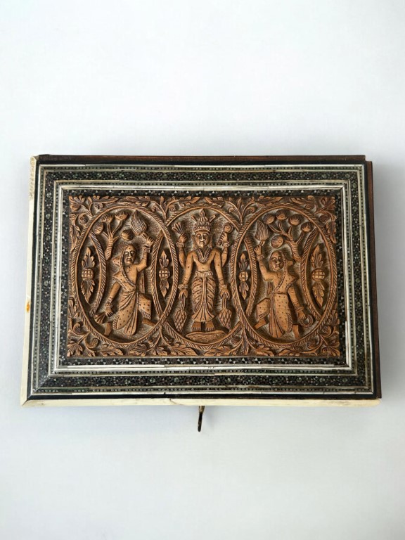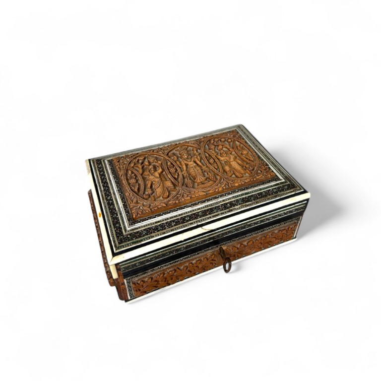 Scrigno Anglo-indiano legni pregiati e intarsi cm 18.5x13x6
