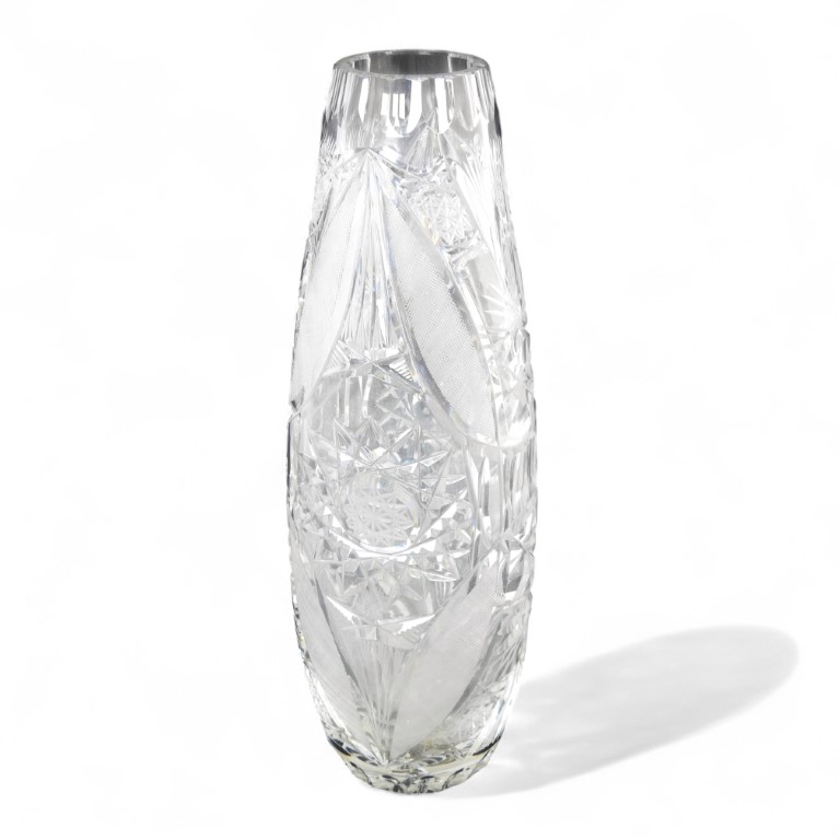 Vaso porta fiori Realizzato in cristallo intagliato a motivi floreali Altezza...