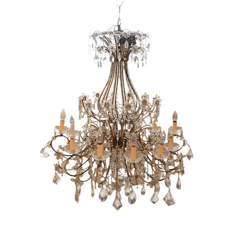 con collane pendenti sfaccettati e in vetro e cristallo a dodici luci