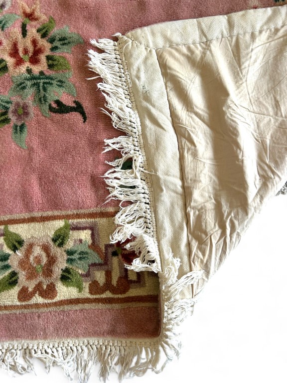 Grande tappeto cinese a fondo rosa e bordo avorio a motivi floreali cm 180x282