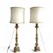 fusto a balaustro, base circolare su tre piedi ferini stilizzati, montati a lume e completi di paralume in stoffa