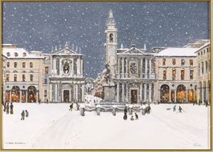 PIGINO CARLO Palazzolo Vercellese 1943 Piazza San Carlo e la neve Olio ed...