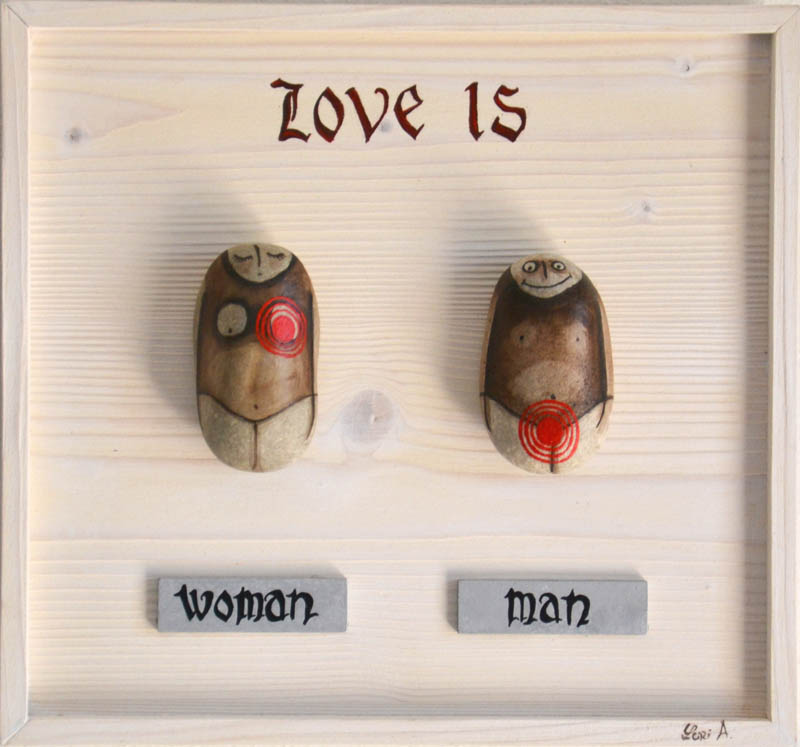Annalisa Lenzi Trento 1982 LOVE IS 2012 acrilico su legno e pietra di fiume...