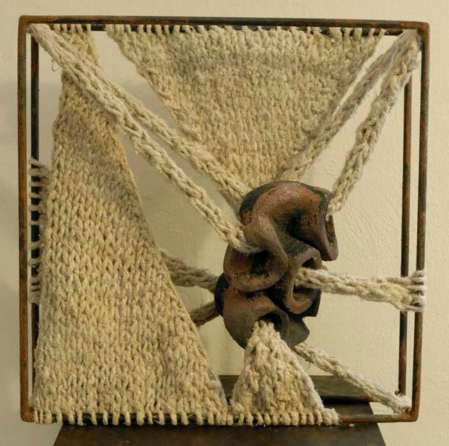 Silvana Pincolini Milano 1950 Genesi 2010 Ferro, Ceramica Raku e Corda 40x40x12 Certificato di autenticità