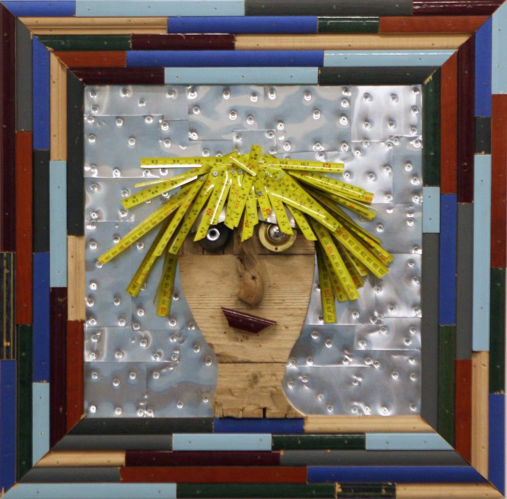 Lele De Bonis torino 1980 La moglie del corniciaio Tecnica mista estroflessa su tavola 60x60x7 Certificato di autenticità