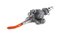 SONAGLIO IN ARGENTO Birmingham, XIX Sec. inciso e sbalzato a motivi floreali, terminale in corallo rosso peso 66 gr.