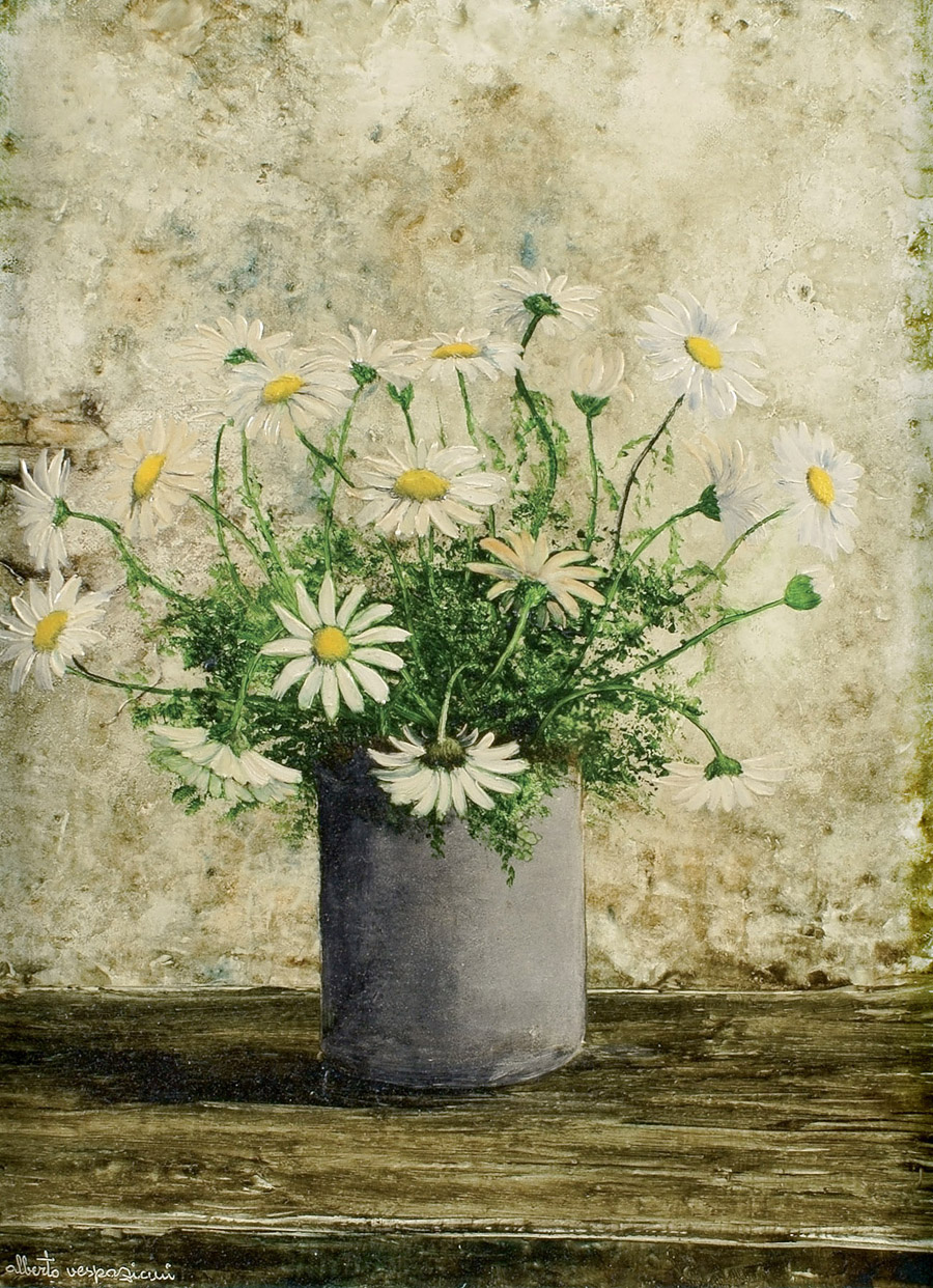 Lotto 65 | ALBERTO VESPAZIANI Roma, 1927 "Margherite bianche", acrilico su tela, anno...