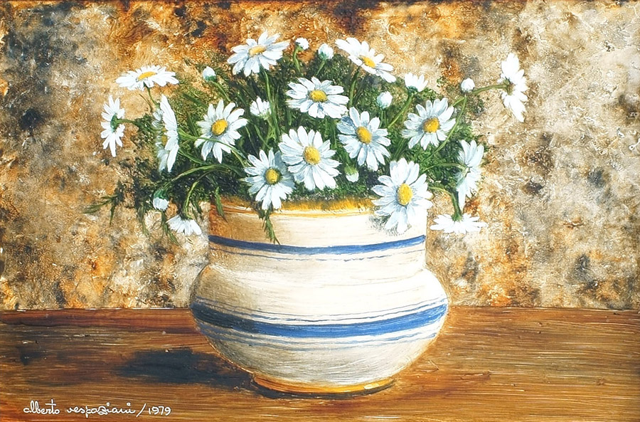 ALBERTO VESPAZIANI Roma, 1927 "Gioia di primavera", acrilico su tela, firmato e datato 1979 in basso a sinistra e sul retro, entro cornice 20x30 cm.