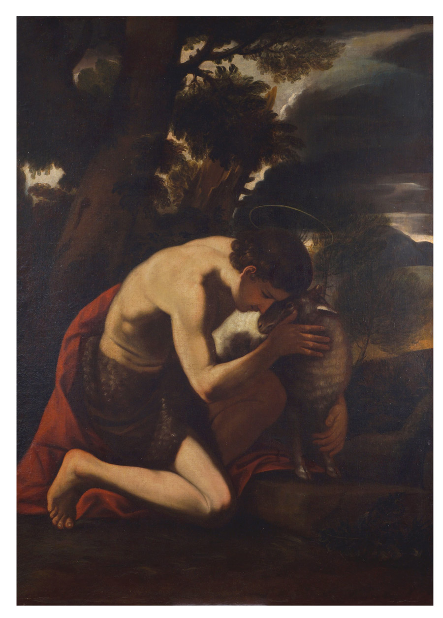 SCUOLA ITALIANA XVII Sec. "San Giovannino nel deserto", olio su tela 173x123 cm.