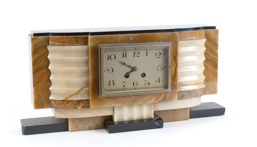 OROLOGIO ART DECÒ DA TAVOLO IN MARMI DIVERSI Francia, XX Sec. quadrante...