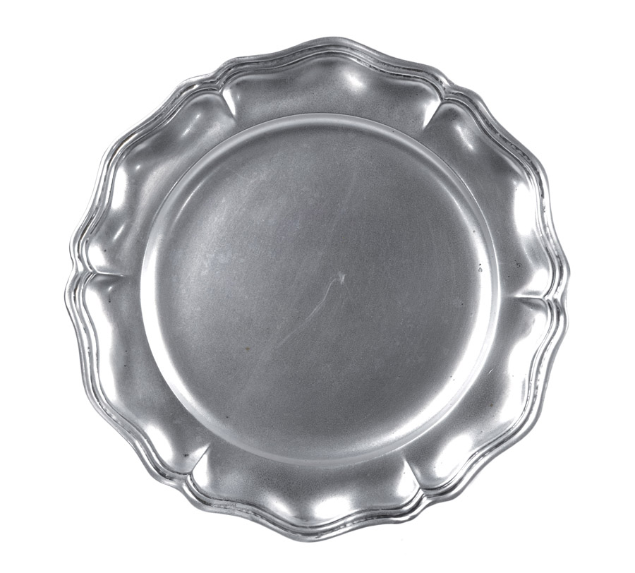 PIATTO IN ARGENTO CON PROFILO SMERLATO fine XIX Sec. d. cm. 27 peso 415 gr.