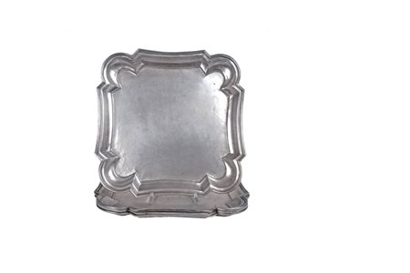 QUATTRO PIATTI IN ARGENTO Venezia, XIX Sec. profilo di linea mossa, punzoni con iniziali del saggiatore, cm. 28,5x28,5 peso 3170 gr.