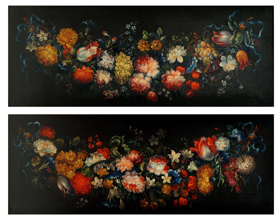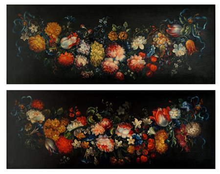 SCUOLA ITALIANA XX Sec. "Nature morte di fiori", coppia di oli su tela, entro cornici 42x115 cm.