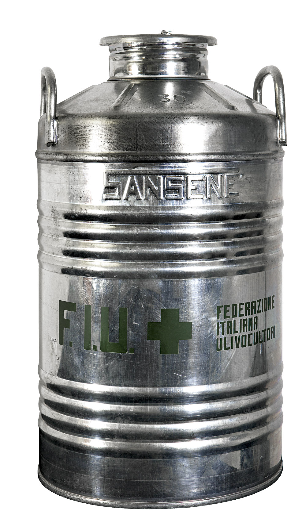 Joseph Beuys Krefeld 1921 – Düsseldorf 1986 Oliera F.I.U., 1980 Latta di metallo riempita di olio di oliva, 53 cm Firmata sul coperchio con etichetta numerata Provenienza: collezione privata Ölkanne F.I.U., 1980 metallfass, mit etwas Olivenöl gefüllt, 53 cm Auf dem Deckel mit numeriertem Editionsetikett signiert Provenienz: private Sammlung