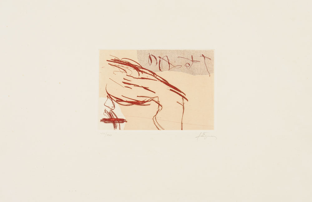 Antoni Tapies Barcelona 1923 – 2012 Senza titolo, anni ’90 Litografia, 33 x 38,5 cm Edizione n. 29 / 40 Firmato a matita in basso a destra, numerato a matita in basso a sinistra Ohne Titel, 90er Jahre Lithographie, 33 x 38,5 cm Auflage Nr. 29 / 40 Mit Bleistift unten rechts signiert, mit Bleistift unten links nummeriert
