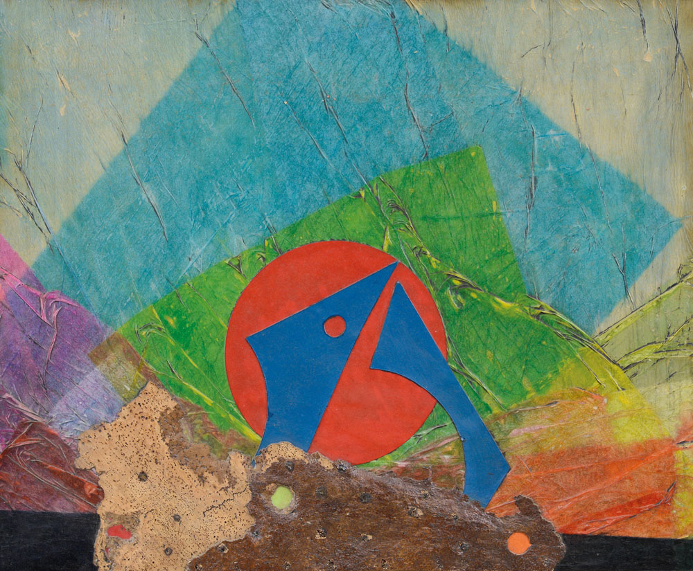 collage e sughero su tavola cm. 60x72, firma, titolo e archivio al retro, dichiarazione d'autenticità e archivio del figlio Roberto Crippa Junior su foto.