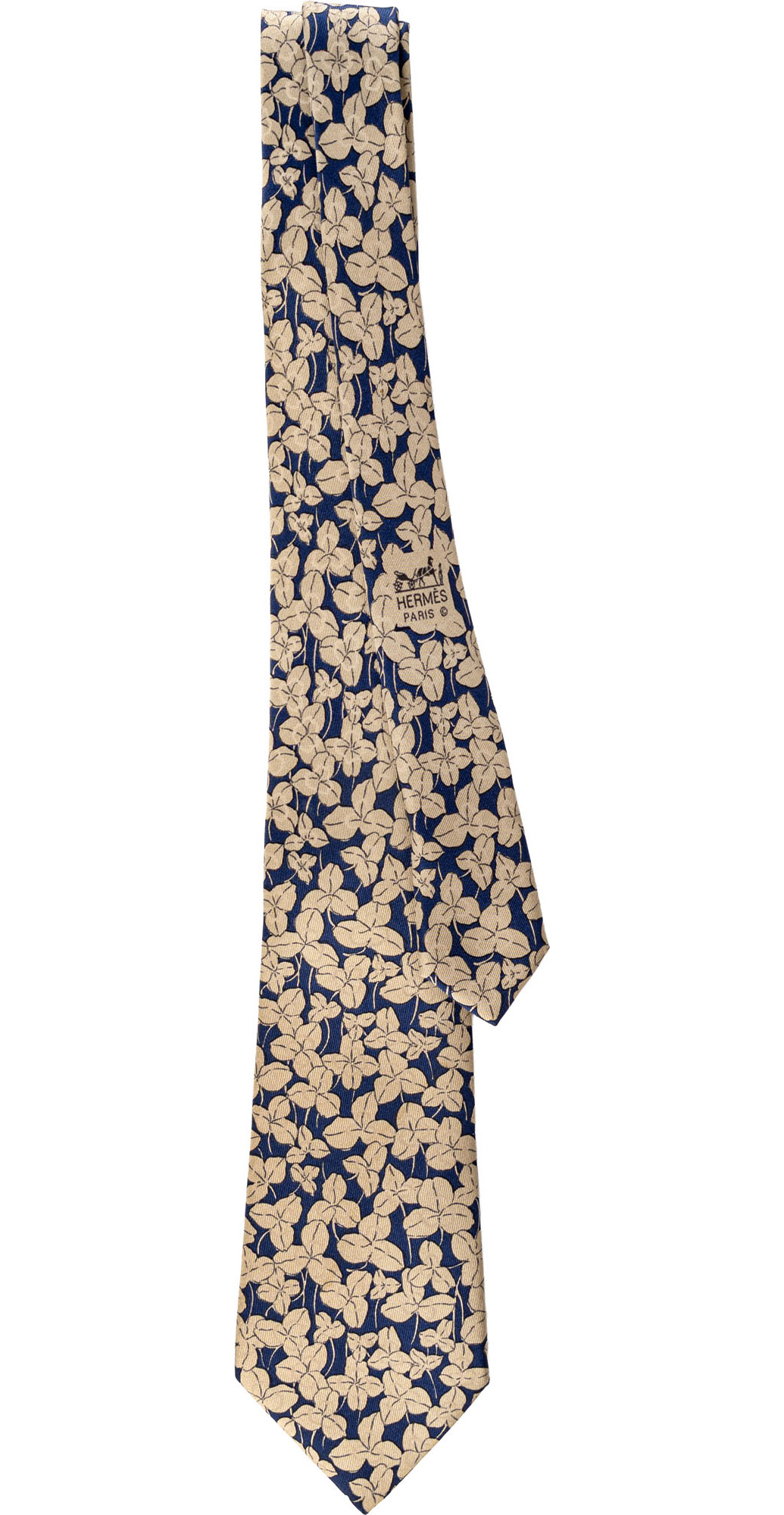 HermèsCravatta 7228 UAIn seta, foglie su fondo bluIn ottime condizioni
