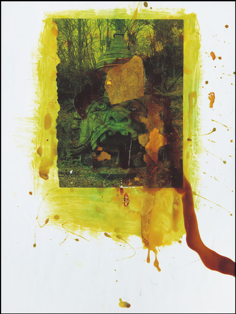 smalto e collage su carta cm. 51x39, firma in basso a destra, timbro della Galleria Il Principe (Roma) al retro, opera registrata opera registrata presso l'Archivio Mario Schifano (Monica Schifano) al numero 00462070507 come certificato allegato.