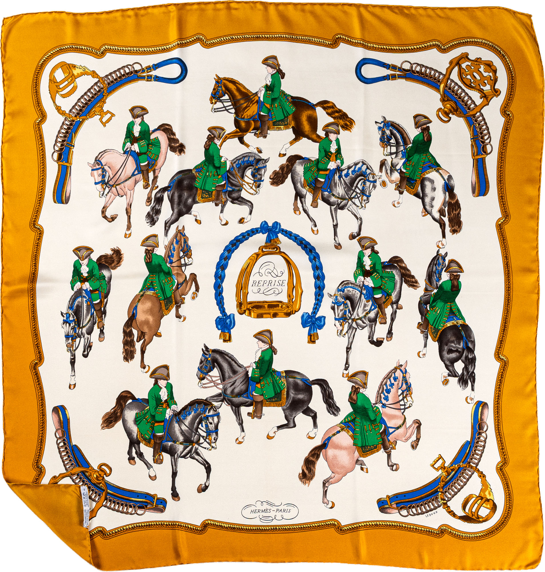 HermèsFoulard 'Reprise'In seta, Philippe Ledoux90 x 90 cmPrima edizione 1970, riedizione 1993/1997Con etichetta e scatolaIn buone condizioni