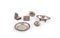Formato da quattro scatolette portapillole, un piattino rotondo dal bordo smerlato e ondulato di ca 7.5 cm e da una piccola saliera di forma ovale dai bordi smerlati e ondulati sorretta da quattro piedini finemente decorati, cm 8.5 x 5.0 x 2.0 ca firmata Flli Miracoli