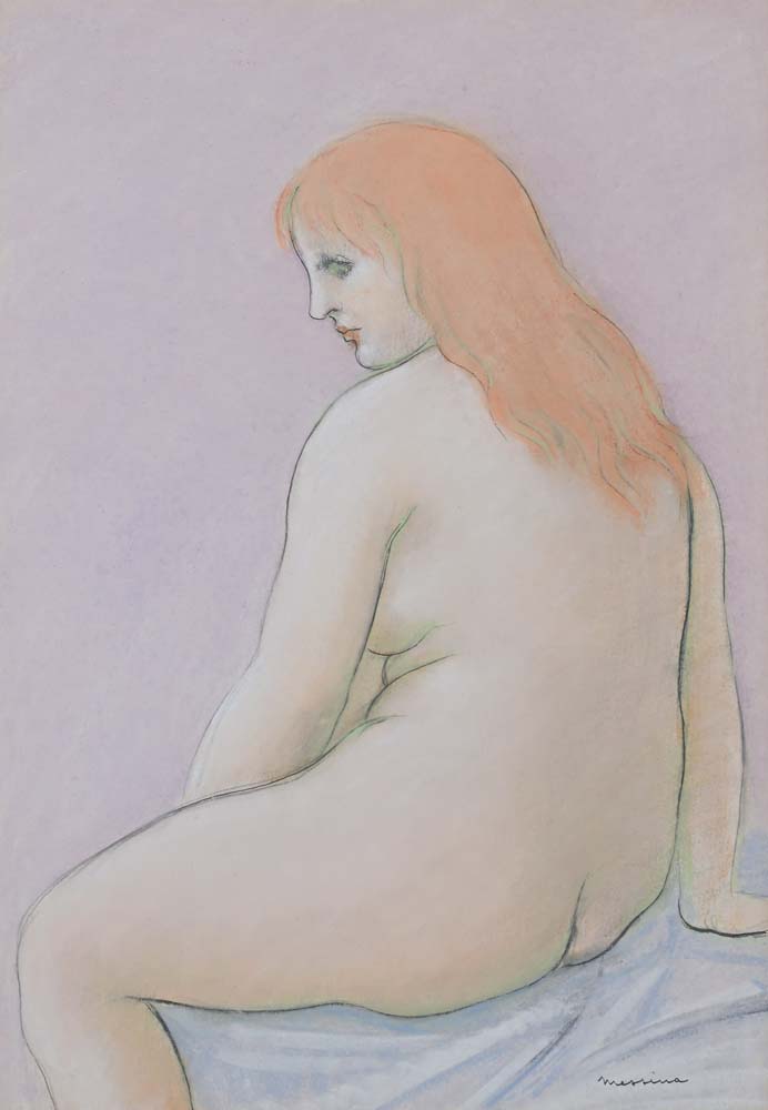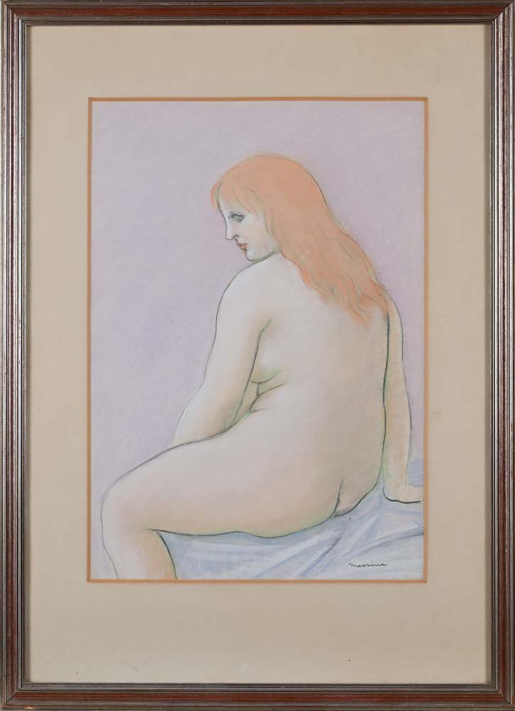 Nudo di donna seduta Firma in basso a destra "Messina" Pastelli cerosi e matita su carta cm 47x33 - in cornice cm 69x51