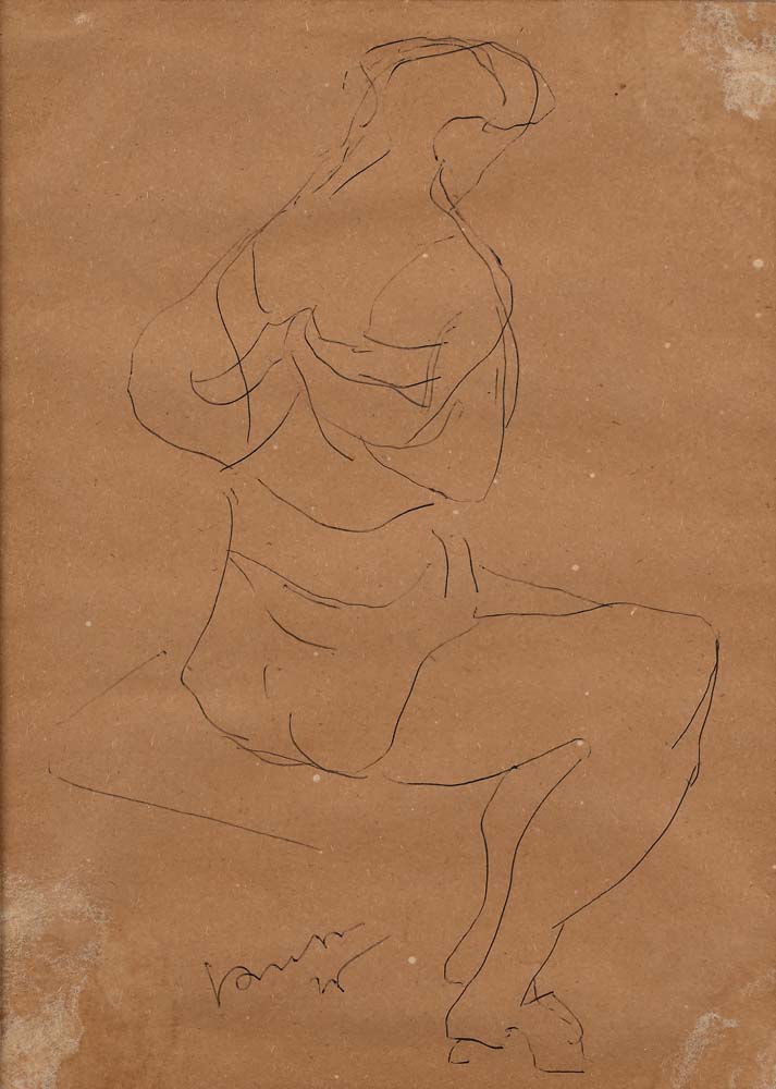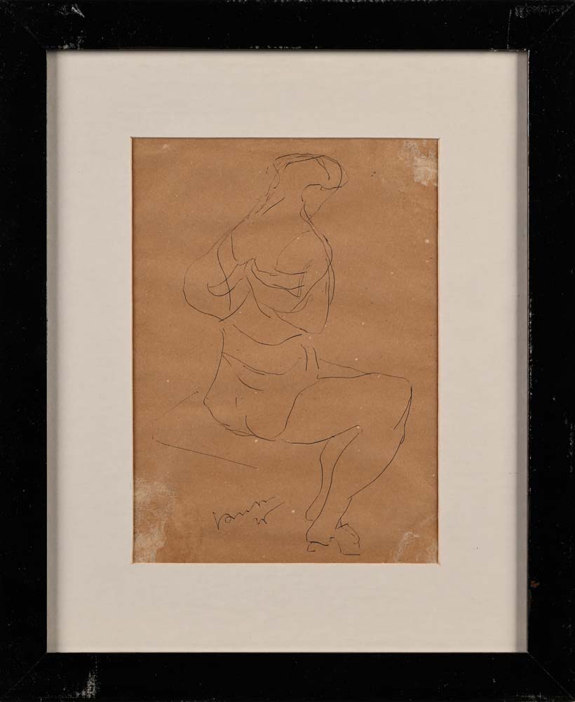 Figura Femminile 1946 Firma in basso a sinistra "Fontana" Inchiostro nero su carta cm 25x19 - in cornice cm 42x35 Certificato di autenticità e provenienza rilasciato da Arte Investimenti, Milano Coll. Privata, Milano