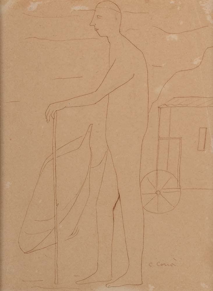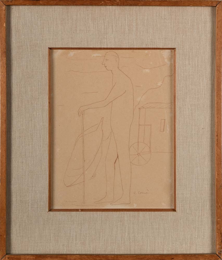 Il viandante Firma in basso a destra "C. Carrà" Inchiostro su carta cm 26,5x21 - in cornice cm 44x37 Avviata procedura di archiviazione presso l'Archivio Carlo Carrà a cura di Luca Carrà