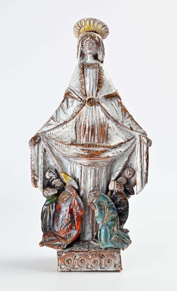 Madonna benedicente 1970 Ceramica policroma cm h 50x25x12 Certificato di autenticità su fotografia rilasciato dalla Galleria Fidia, Roma