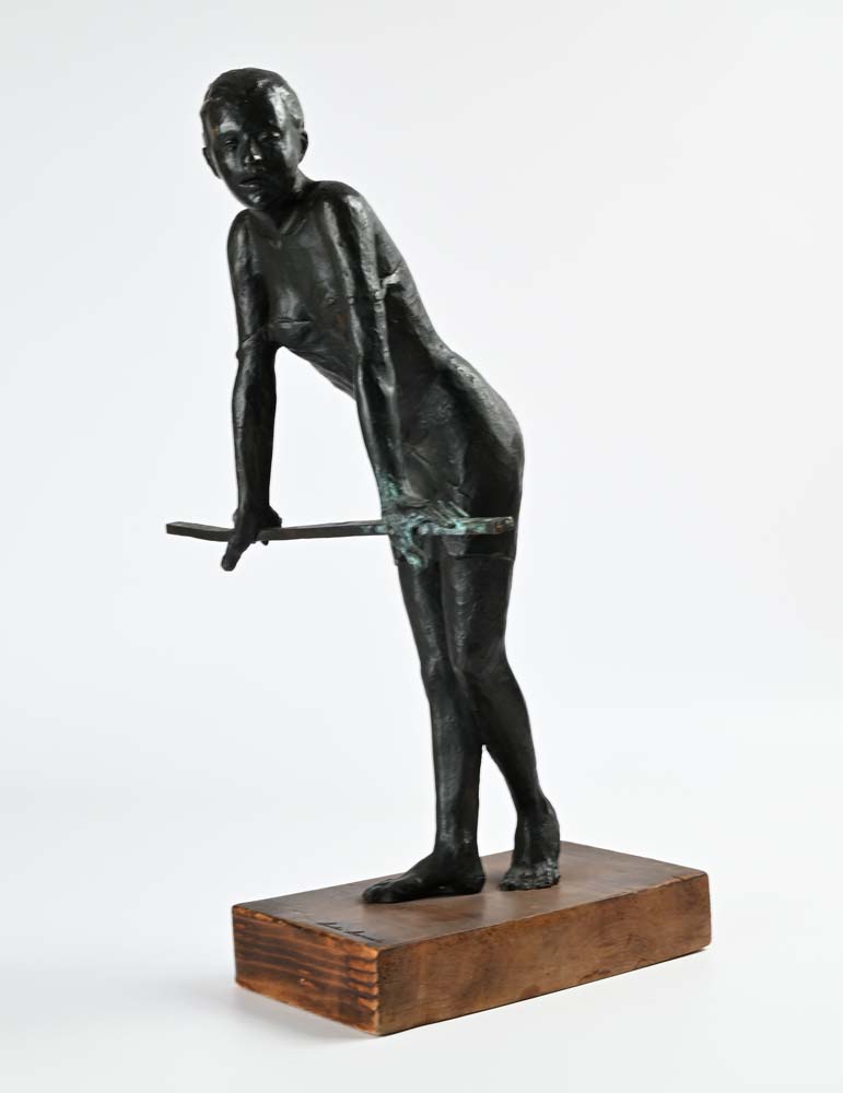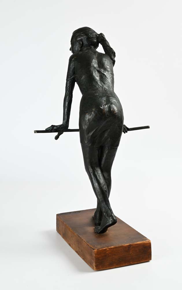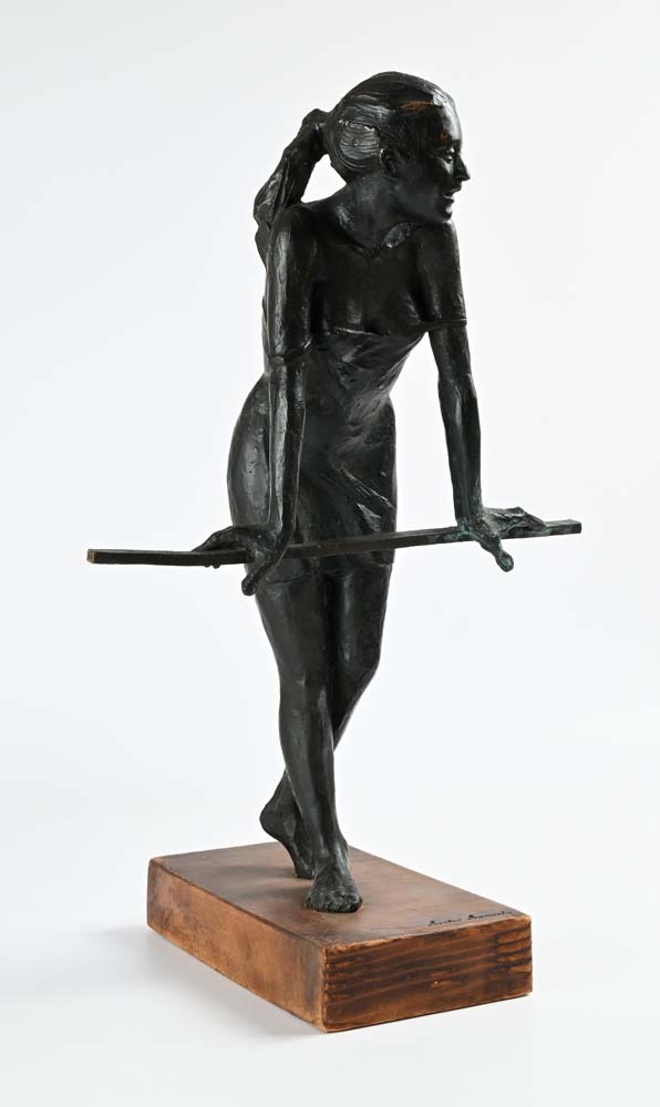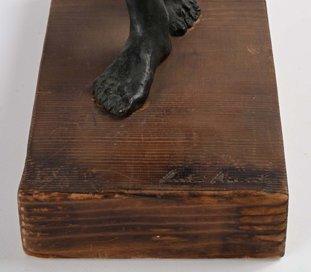 Al balcone 1990 Firma incisa "Leonardo Lucchi". Scultura in bronzo su base in legno cm h 57x35x29 Leonardo Lucchi, Sculture, Galleria d'Arte F. Russo, Roma, pagina 57 numero 53
