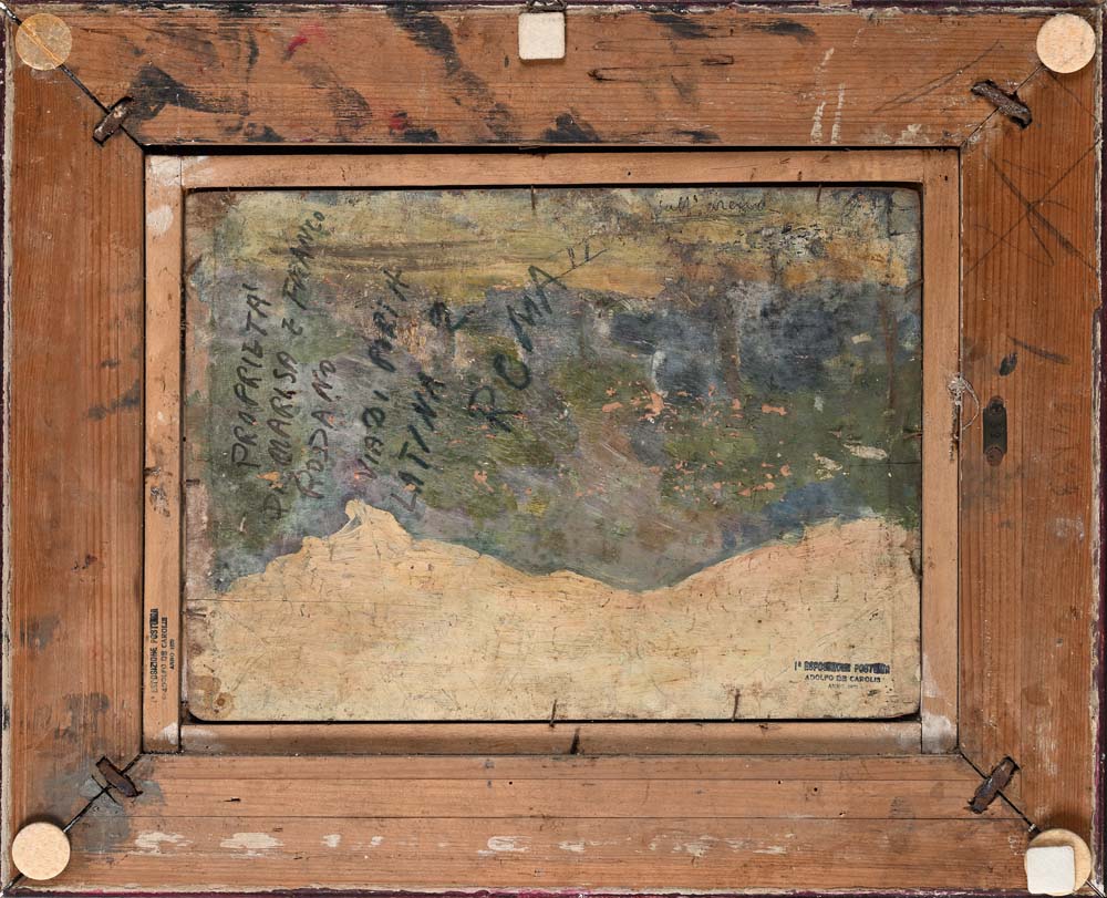 Maternità Firma in basso a destra "A.d. Karolis". Al verso reca timbro "I Esposizione Postuma Adolfo De Carolis Anno 1929" Olio su tavola cm 23,5x33 - in cornice cm 40x50
