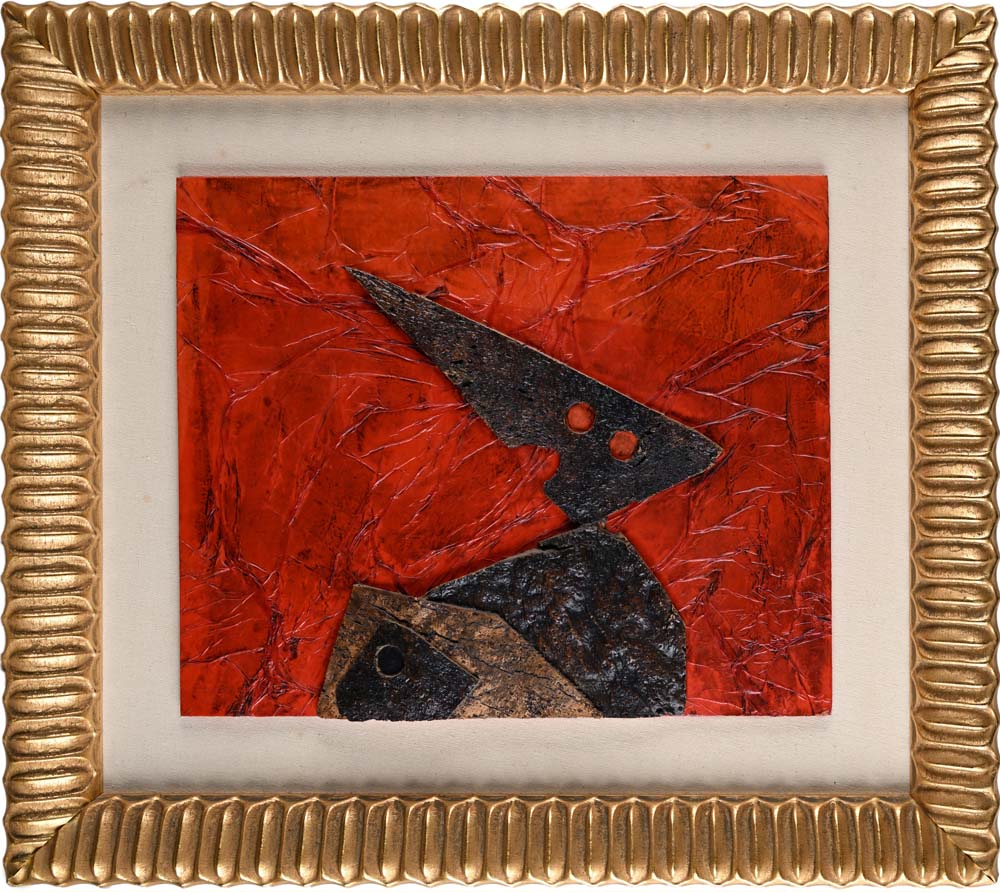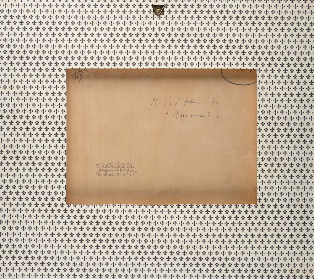 Animal 1971 Firma, data e titolo al verso "R. Crippa '71, Animal". Autentica al verso di Baggini Rosangela. Tecnica mista (sughero e pittura) su tavola cm 38x46 - in cornice cm 60x68