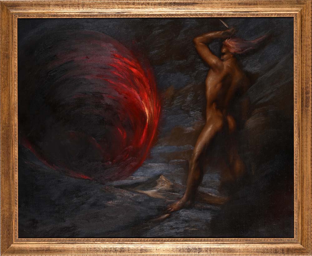 Fendente 1984 Firma, data e titolo al verso "Omar Galliani, Fendente, 1984". Etichetta galleria Cleto Polcina Olio su tela cm 80x100 - in cornice cm 92x112 Certificato di autenticità su fotografia rilasciato dall'Archivio Opere di Omar Galliani