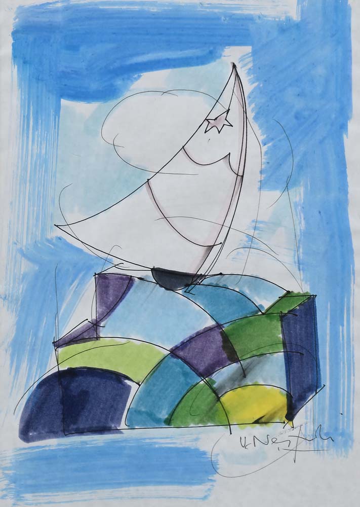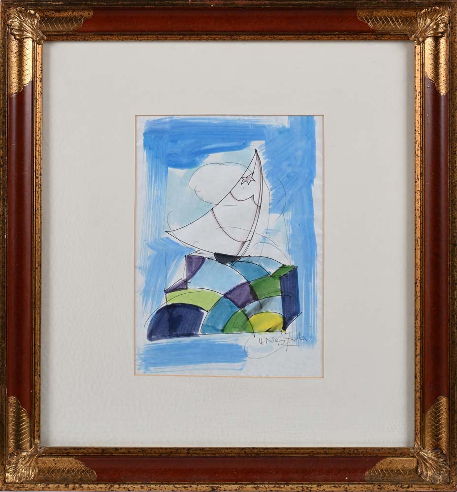 Senza titolo Firma in basso a destra "U. Nespolo" Inchiostro, pennarelli e acquarello su carta cm 30x21 - in cornice cm 54x50