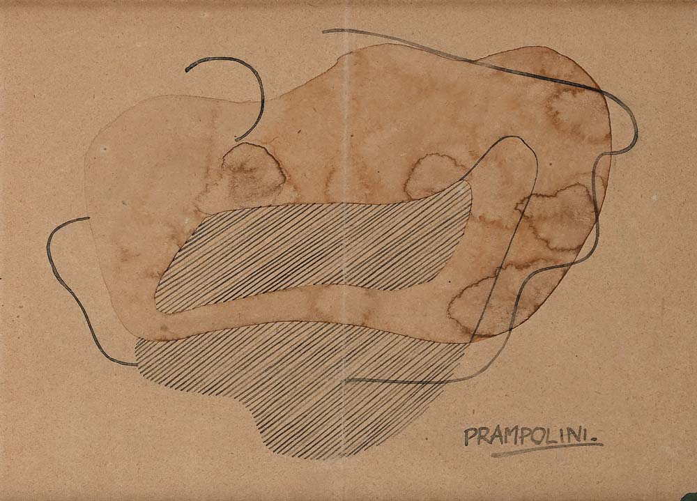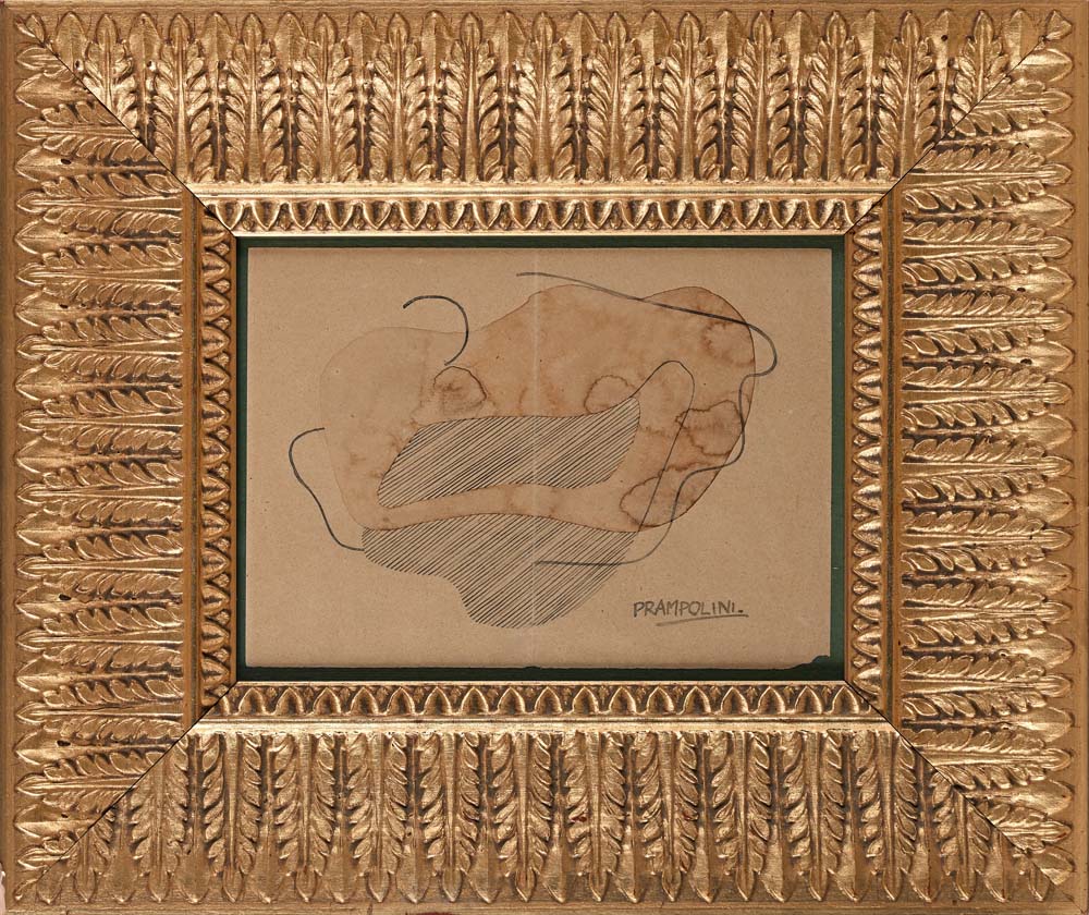 Senza titolo Firma in basso a destra "Prampolini". Inchiostro e acquarello su carta cm 15,5x22 - in cornice cm 34,5x40,5 Certificato di autenticità redatto e firmato di pugno dal Professor Massimo Prampolini