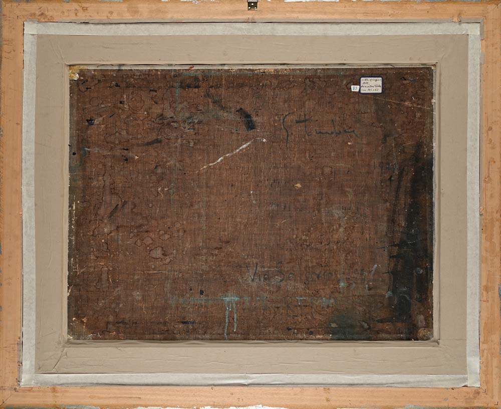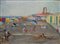 Alla spiaggia 1967 Firmato al verso "Stradone" Olio su cartone telato cm 60x80 - in cornice cm 87x107 Stradone tra finito e non finito, edizione Campopiano, pag. 112 Certificato di auteticità su fotografia firmato da Wanda Tibaldi